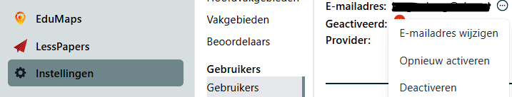 Instellingen – Gebruikers – 3 puntjes achter het e-mailadres