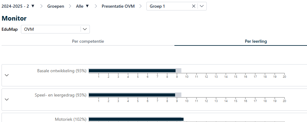 De Monitor is te bekijken Per competentie, Per leerling of Per indicator.