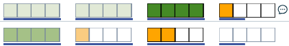 OVM: De 1e drie blokjes kleuren oranje. Zodra het vierde blokje gekleurd wordt worden ze alle vier groen (100%).