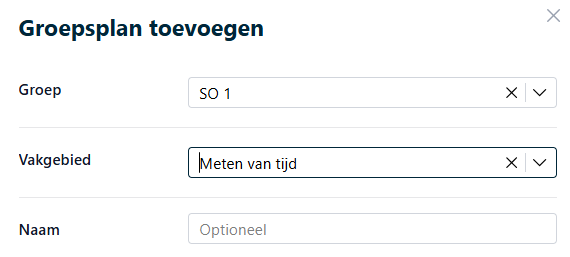Je kunt nu een groepsplan toevoegen voor vakgebied Tellen en ordenen.