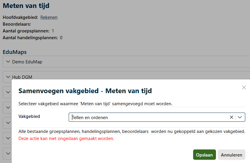 Het vakgebied kan ook eenvoudig samengevoegd worden met een ander vakgebied. Let op ze moeten beide wel onder hetzelfde hoofdvakgebied hangen.