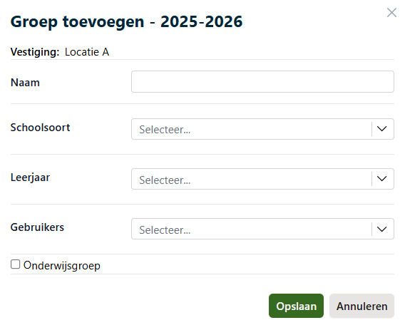 Zet een vinkje wanneer het een Onderwijsgroep is en klik op Opslaan.