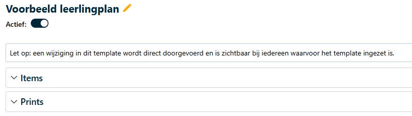 Een leerlingplan template bestaat uit items (tekstveld, datum, vinkveld, tabel etc)