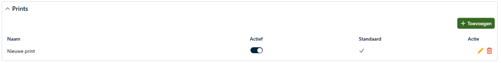 Bij ieder template heb je de mogelijkheid een print-template toe te voegen waarmee je bepaalt wat je wel en niet terug wilt zien in de print. Een print template is niet verplicht. Wanneer je deze Actief en Standaard maakt zal EduMaps gebruikmaken van dit print-template, tenzij je voor een ander template kiest.